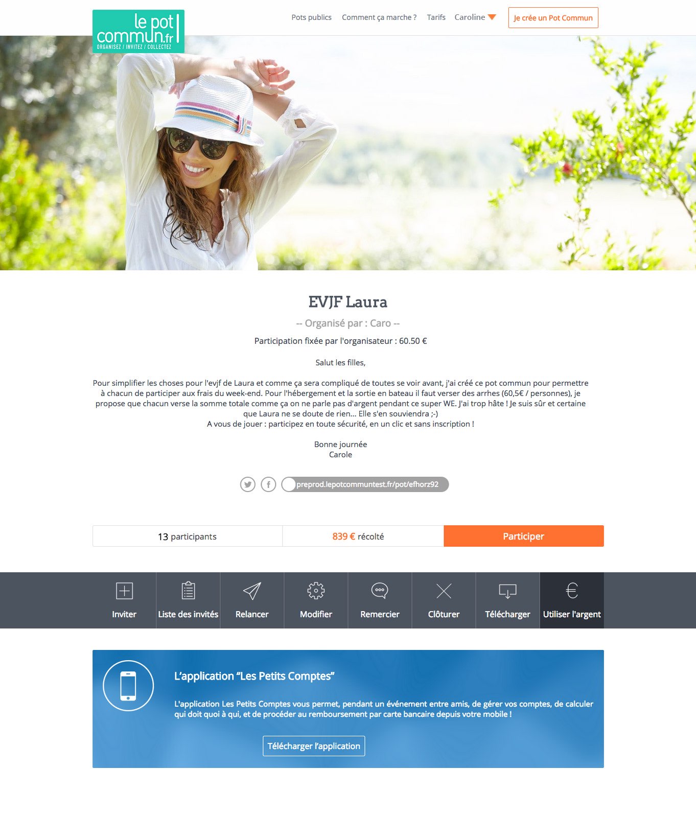 Inviter des personnes à participer à votre cagnotte via Facebook, mails, Flash code....